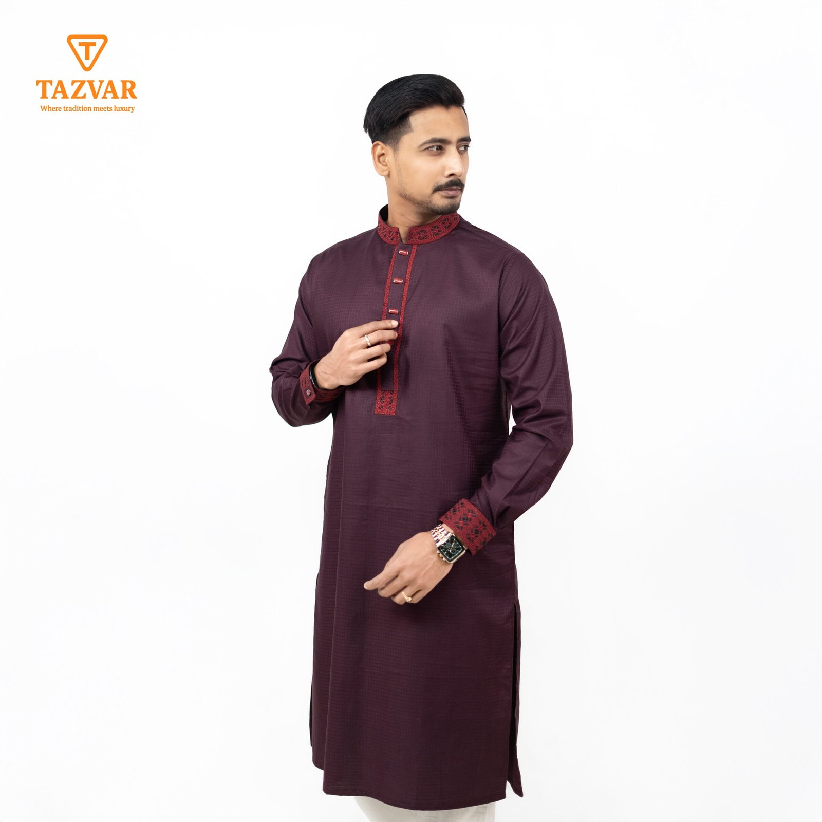 Experience timeless elegance with TAZVAR’s Luxury Panjabi – Eid Collection 2026, crafted from premium Imported Shirting Cotton Fabric. Designed in a rich Deep Maroon shade, this panjabi reflects sophistication, tradition, and modern luxury in perfect harmony.