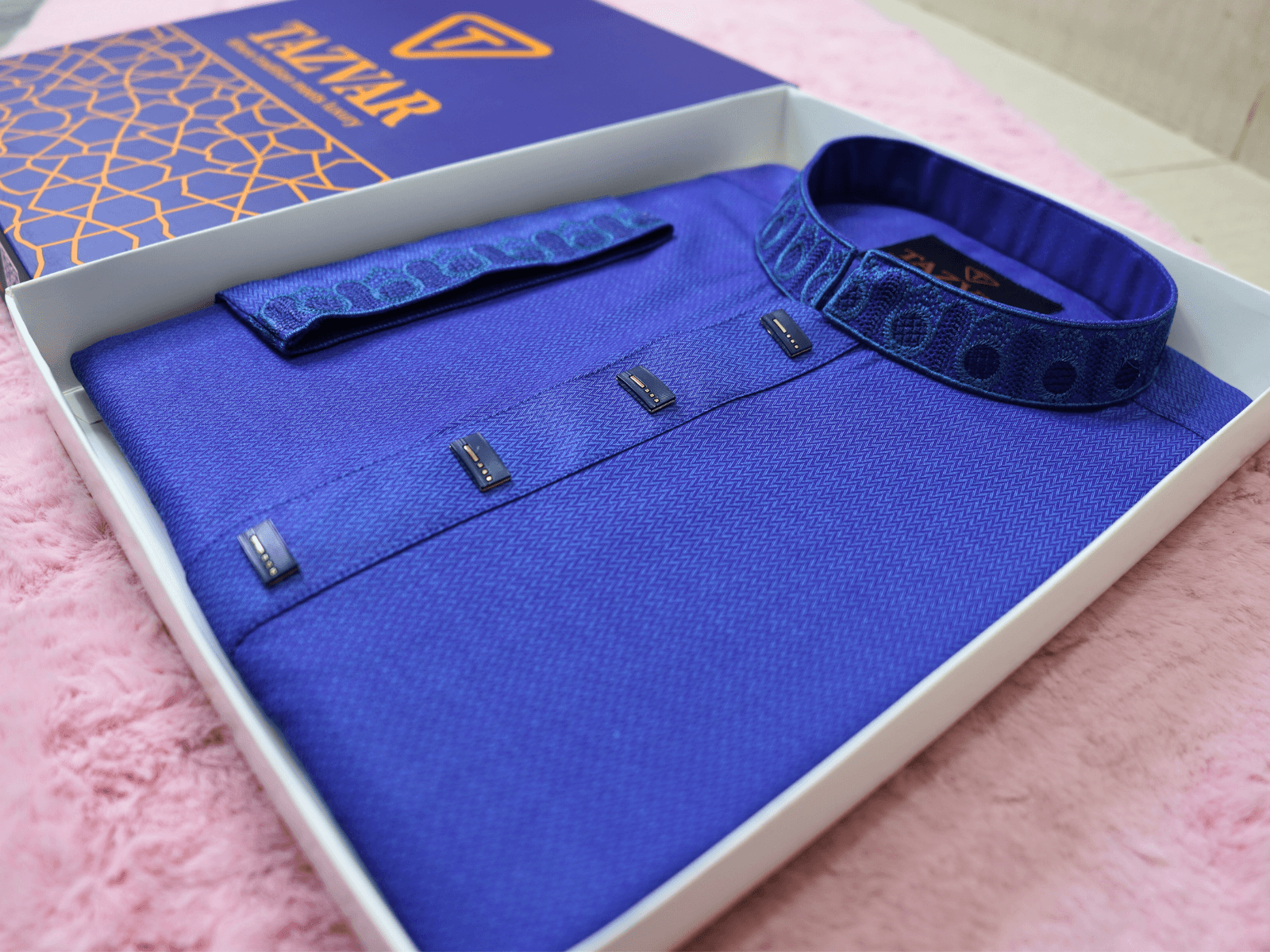 Premium “Imperial Indigo Blu” Panjabi by TAZVAR – made from Imported Dobby Cotton with original fittings for a perfect ready to wear experience.